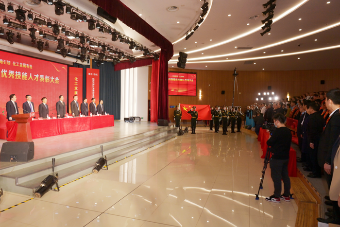表彰大会在全体干部职工迎国旗、唱国歌中隆重开幕。