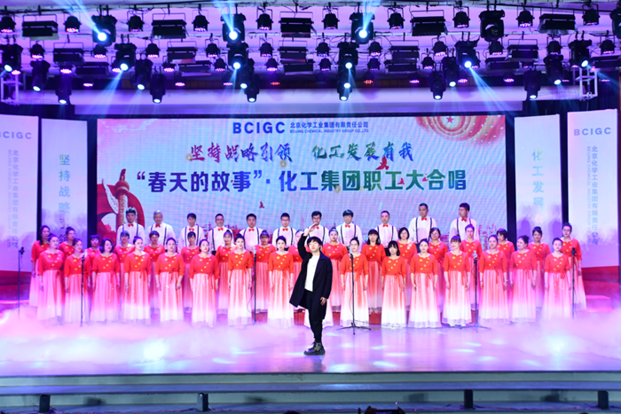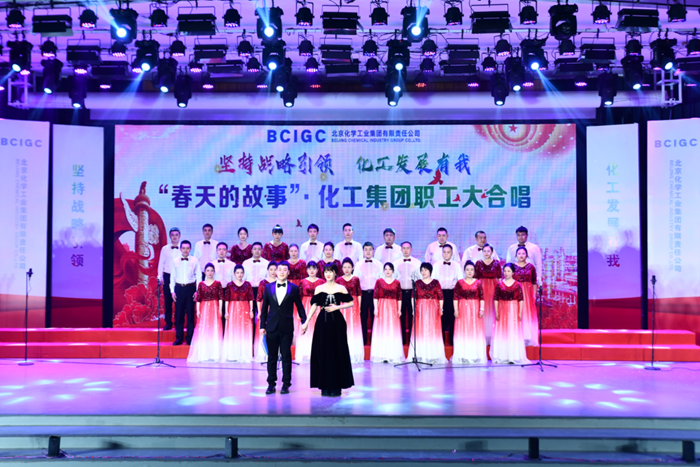 表彰会议结束后,以“坚持战略引领 化工发展有我”为主题的“春天的故事”·化工集团职工大合唱拉开序幕。