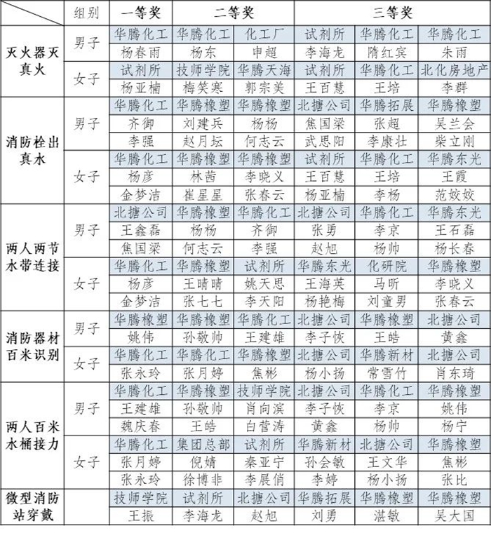 本次大比武各项目设一等奖一名,二等奖两名,三等奖三名。经过激烈的角逐,有17名员工获得一等奖;34名员工获得二等奖;51名员工获得三等奖;各单位获得最佳组织奖、最佳风貌奖、最佳拼搏奖、专业示范奖荣誉。